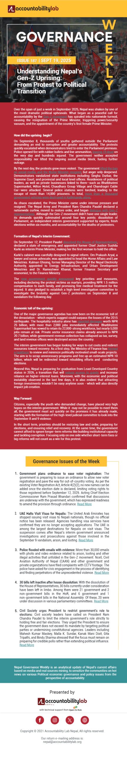View Larger Image Nepal’s Gen-Z Uprising: From Protest to Political Transition By Ashok Pariyar|2025-09-19T18:19:20+05:00September 19, 2025|Comments Off on Nepal’s Gen-Z Uprising: From Protest to Political Transition Share This Story, Choose Your Platform! FacebookXRedditLinkedInWhatsAppTelegramTumblrPinterestVkXingEmail About the Author: Ashok Pariyar