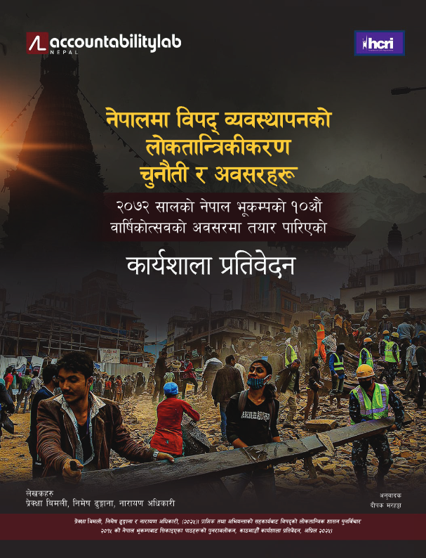 View Larger Image नेपालमा विपद् व्यवस्थापनको लोकतान्त्रिकीकरण चुनौती र अवसरहरू By Ashok Pariyar|2025-09-03T15:23:48+05:00September 3, 2025|Comments Off on नेपालमा विपद् व्यवस्थापनको लोकतान्त्रिकीकरण चुनौती र अवसरहरू Share This Story, Choose Your Platform! FacebookXRedditLinkedInWhatsAppTelegramTumblrPinterestVkXingEmail About the Author: Ashok Pariyar